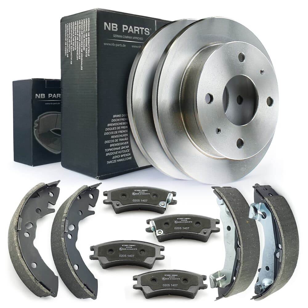 NB PARTS Bremsscheiben + Bremsbeläge + Bremsbacken vorne + hinten