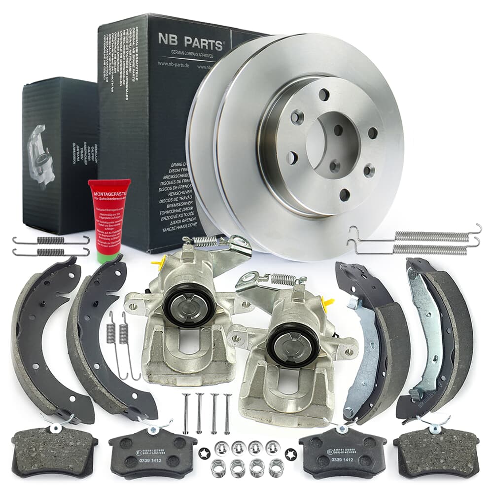 NB PARTS Bremsscheiben + Bremsbeläge + Bremssättel + Bremsbacken + Zubehörsatz hinten