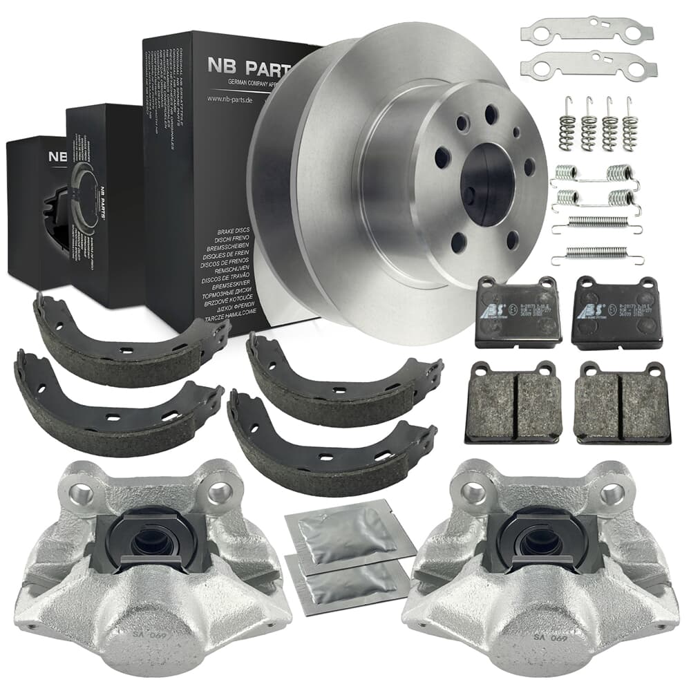 NB PARTS Bremsscheiben + Bremsbeläge + Bremssättel + Bremsbacken + Zubehörsatz radseitig