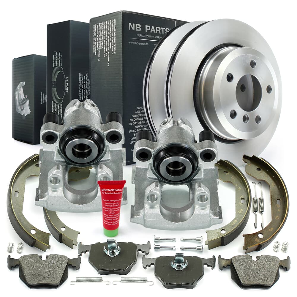 NB PARTS Bremsscheiben + Bremsbeläge + Bremssättel + Bremsbacken + Zubehörsatz radseitig