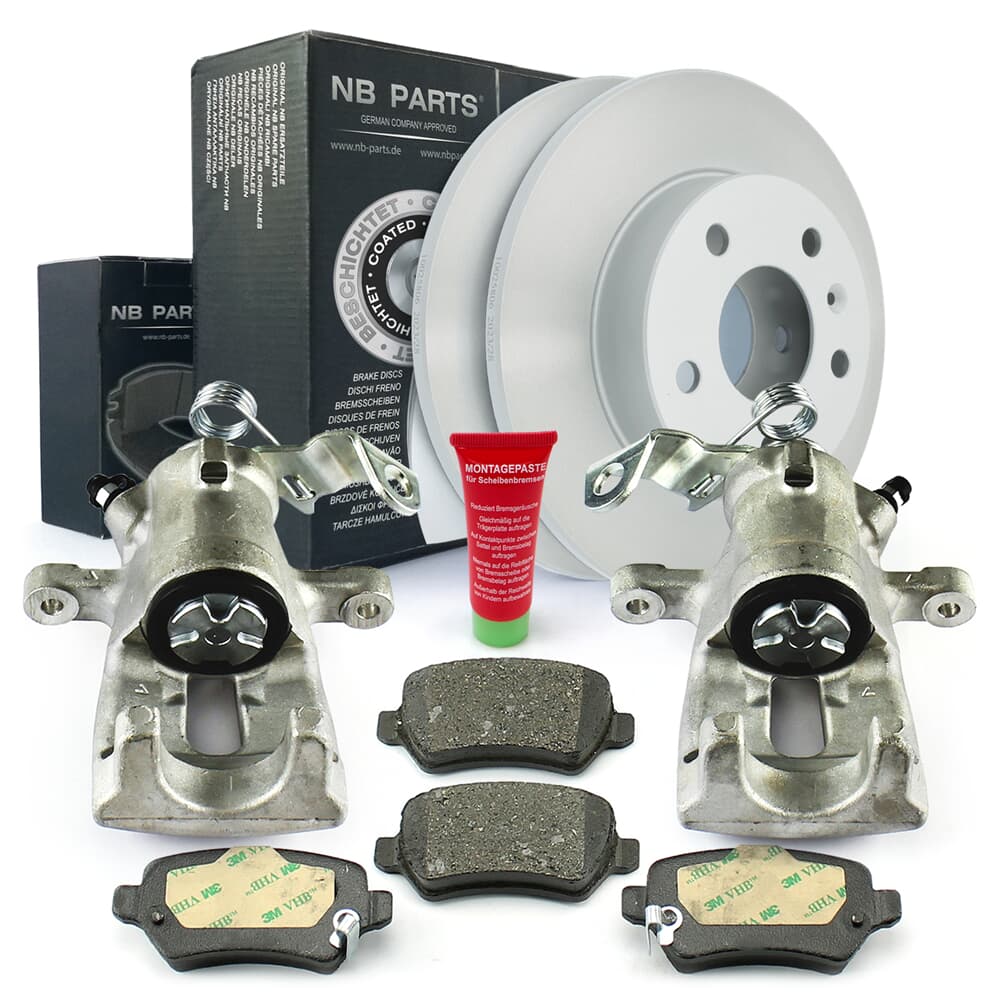 NB PARTS Bremsscheiben + Bremsbeläge + Bremssättel hinten
