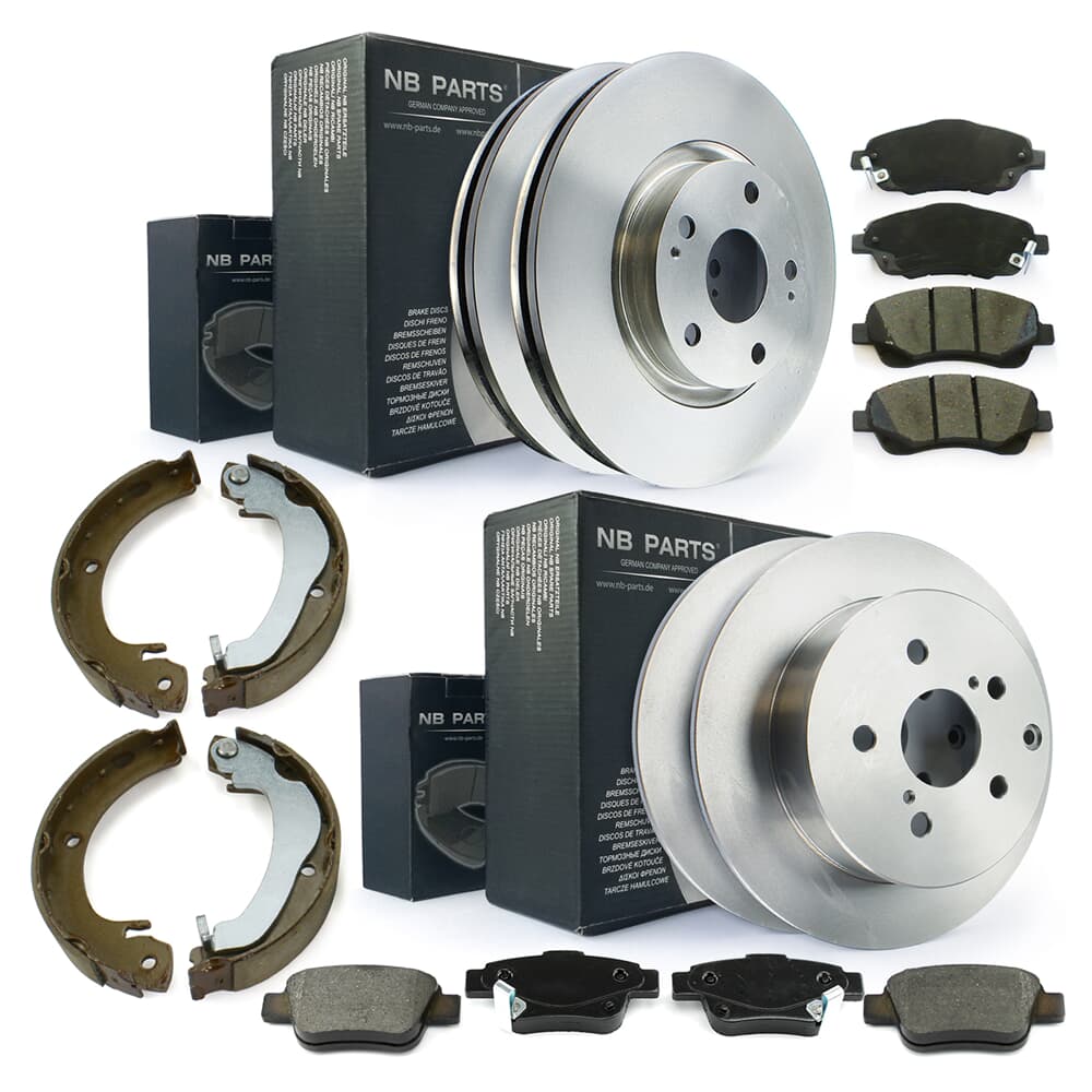 NB PARTS Discos de freno + pastillas de freno + zapatas de freno delantero + trasero