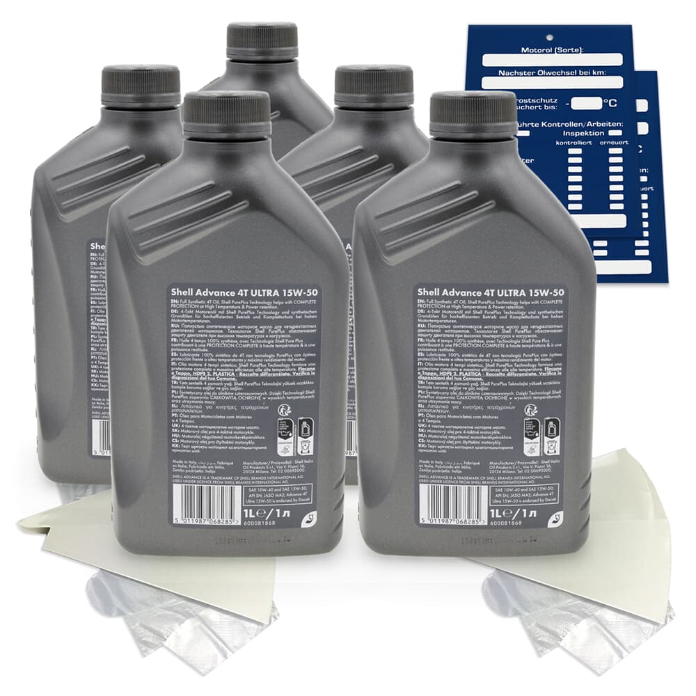 Spezifikationen: SAE 10W-40, SAE 15W-50, API SN, JASO MA-2, Advance 4T Ultra 15W-50 is endorsed by Ducati